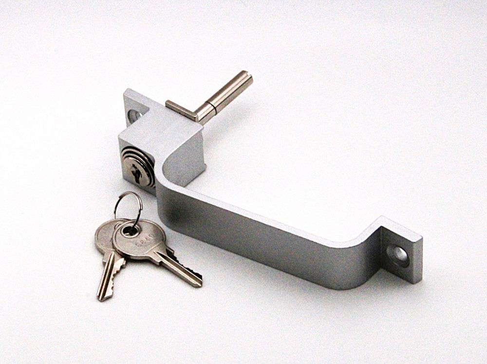 Cierre central asa superpuesto con llave para series correderas, color plata.