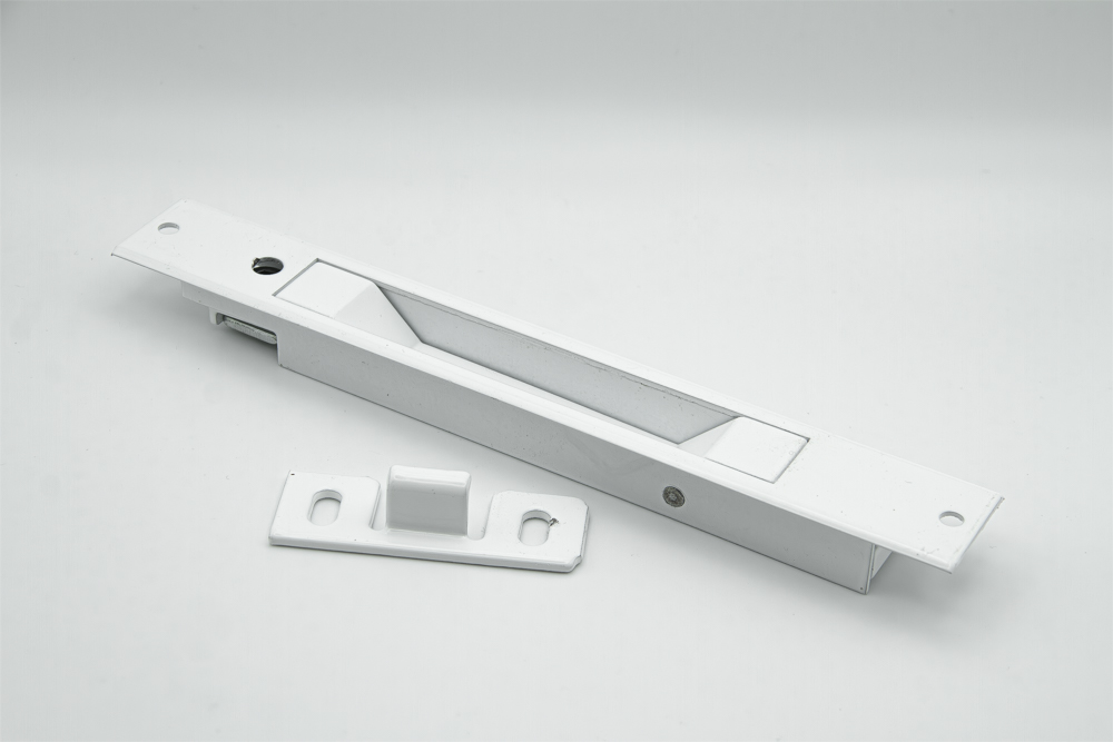 Cierre embutido frontal para ventanas correderas de aluminio, estrecho, blanco. RAN (2 UNIDADES)