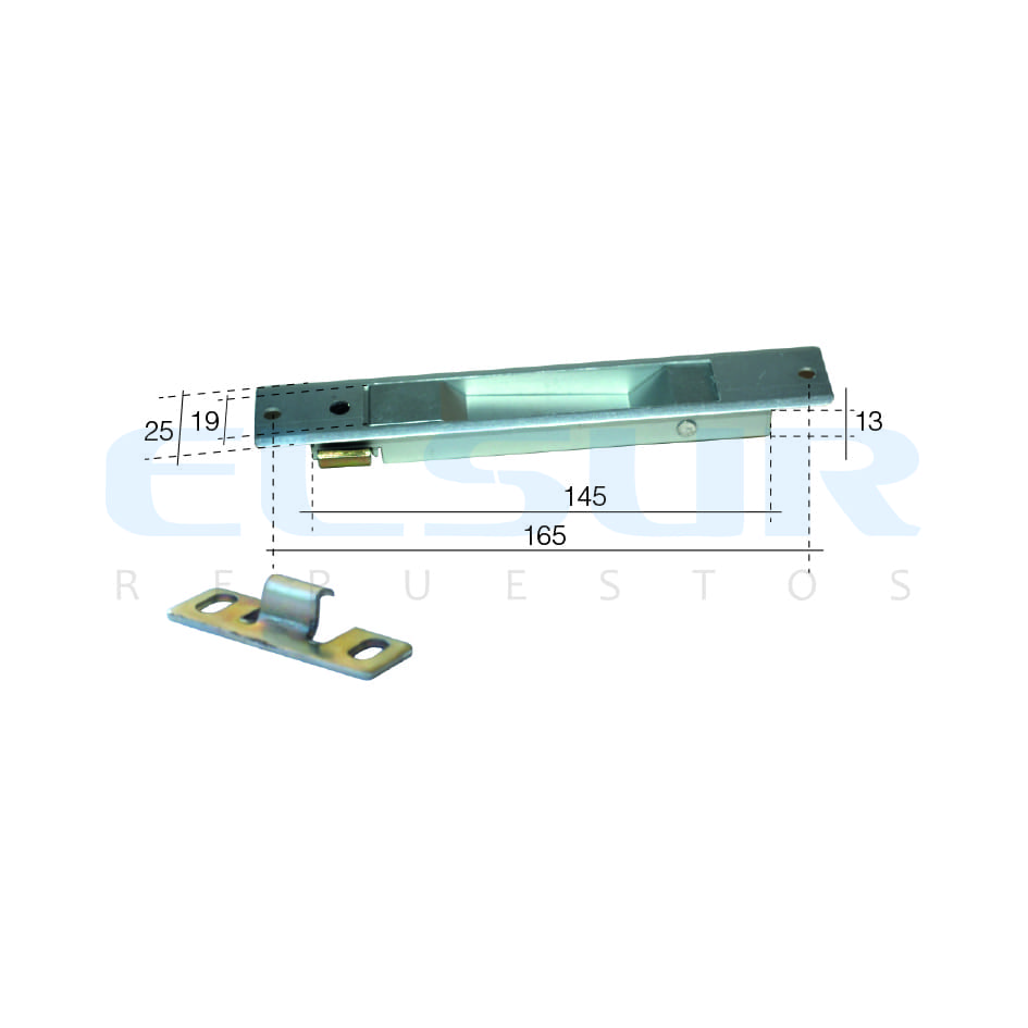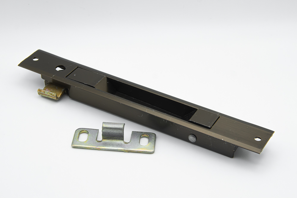 Cierre de perfil estrecho para puertas y ventanas correderas antiguas de aluminio. Fabricado en aluminio lacado bronce. Accionamiento frontal y fijación con dos tornillos de rosca chapa. Ideal para renovar sistemas de cierre en series antiguas.