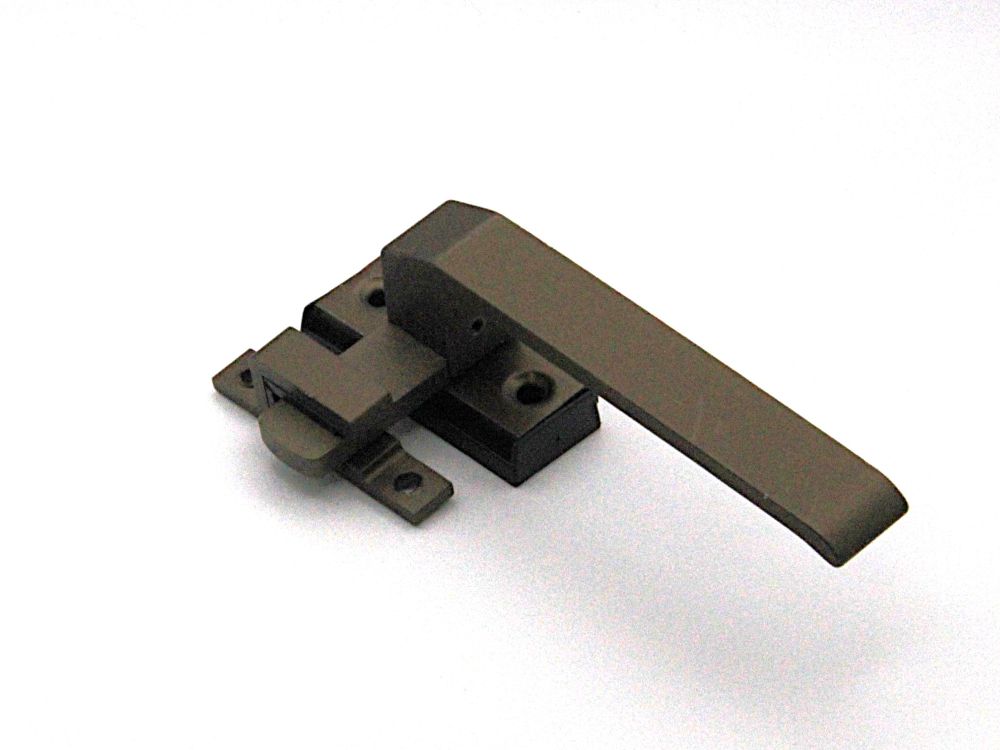 El cierre de presión de aluminio anodizado en color bronce está diseñado para puertas y ventanas antiguas con apertura hacia la derecha. Incluye un contracierre con pieza de nylon para ajuste y suplementos adicionales para compensar desniveles entre hoja y marco.