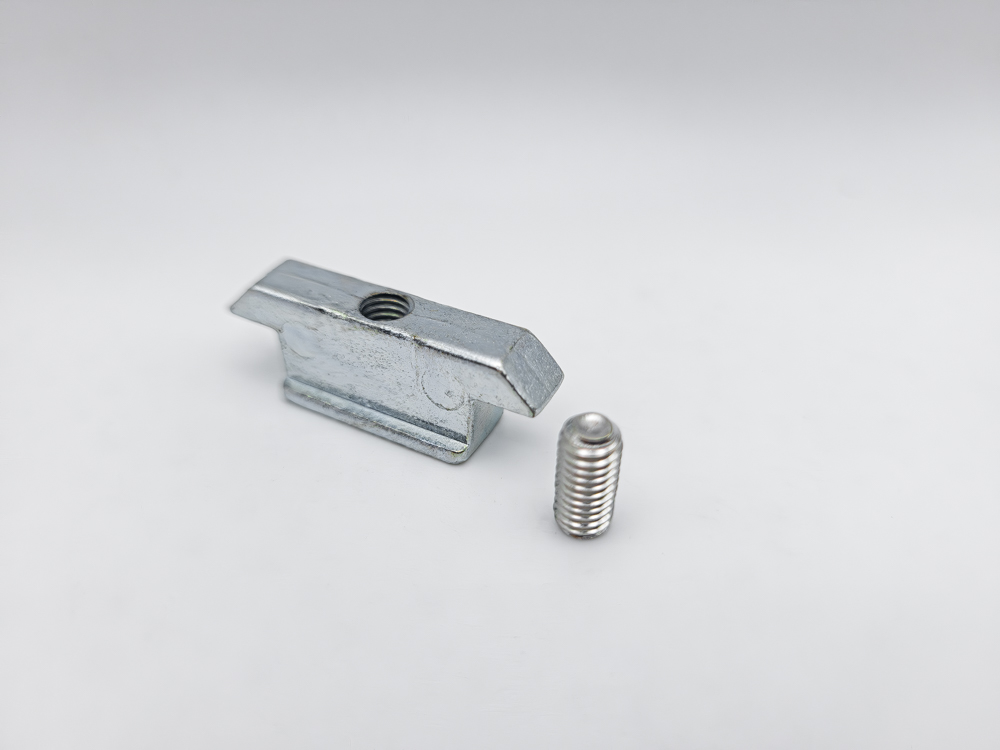 Contracierre vertical para puertas y ventanas correderas con cierres embutidos, compatible con series Triana, 300, 600 y CLL. Fabricado en zamak, con espárrago roscado para fijación en el marco.