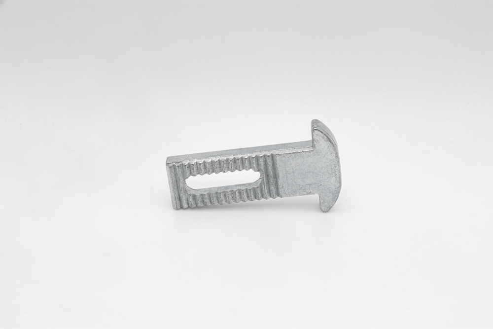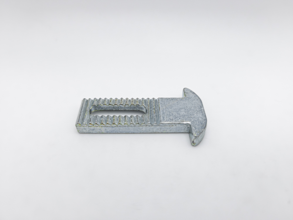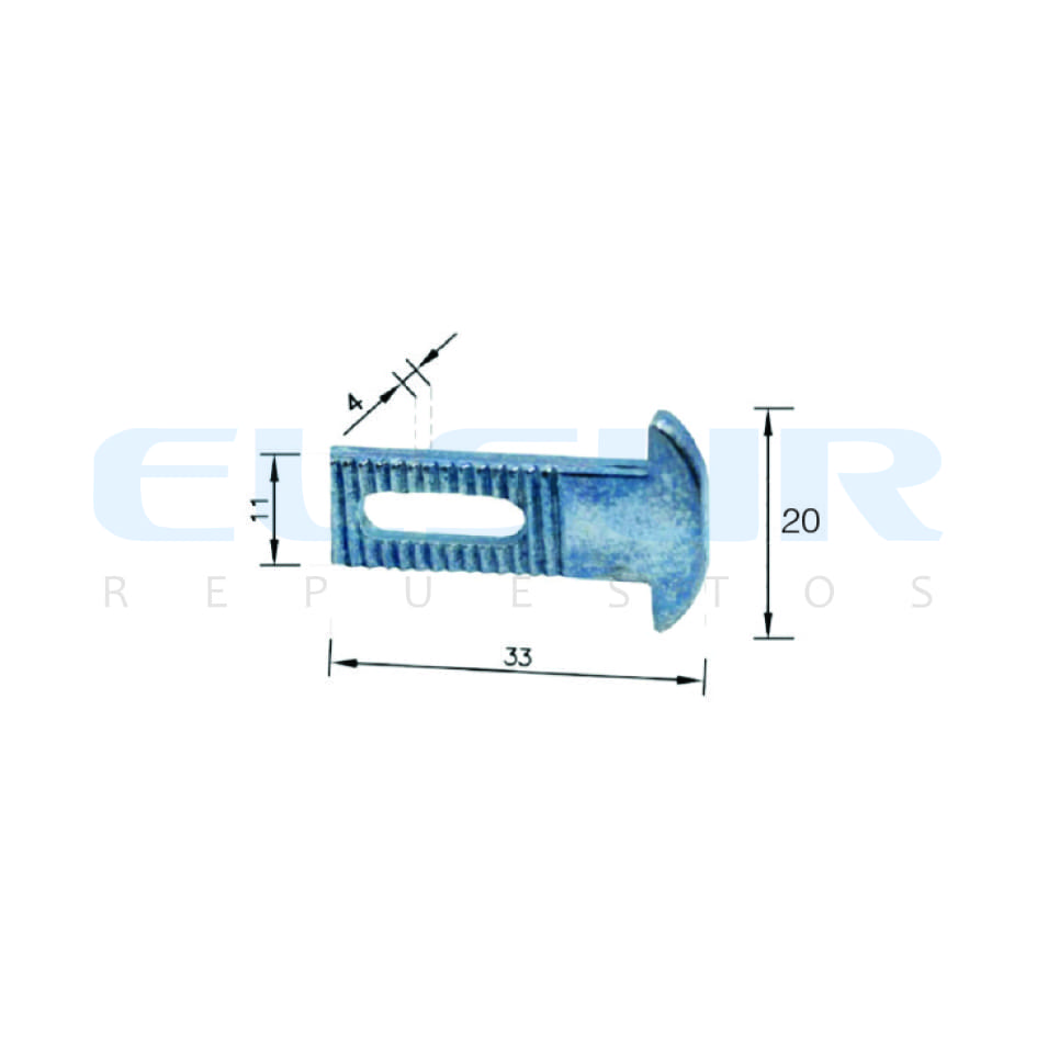 Gatillo recto en zamak para cierres embutidos de nylon en puertas y ventanas correderas. Dimensiones de 11mm de ancho por 33mm de largo.