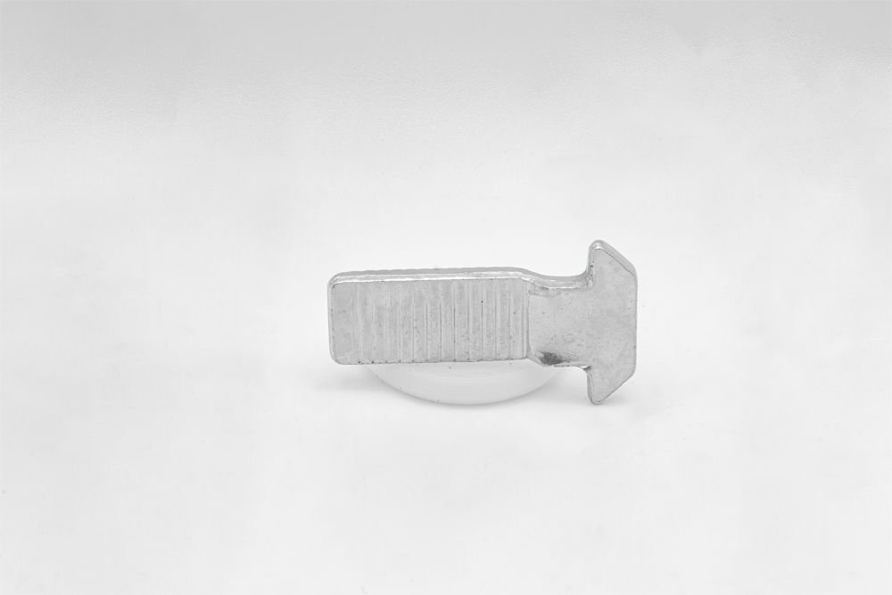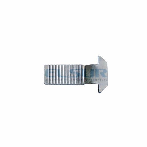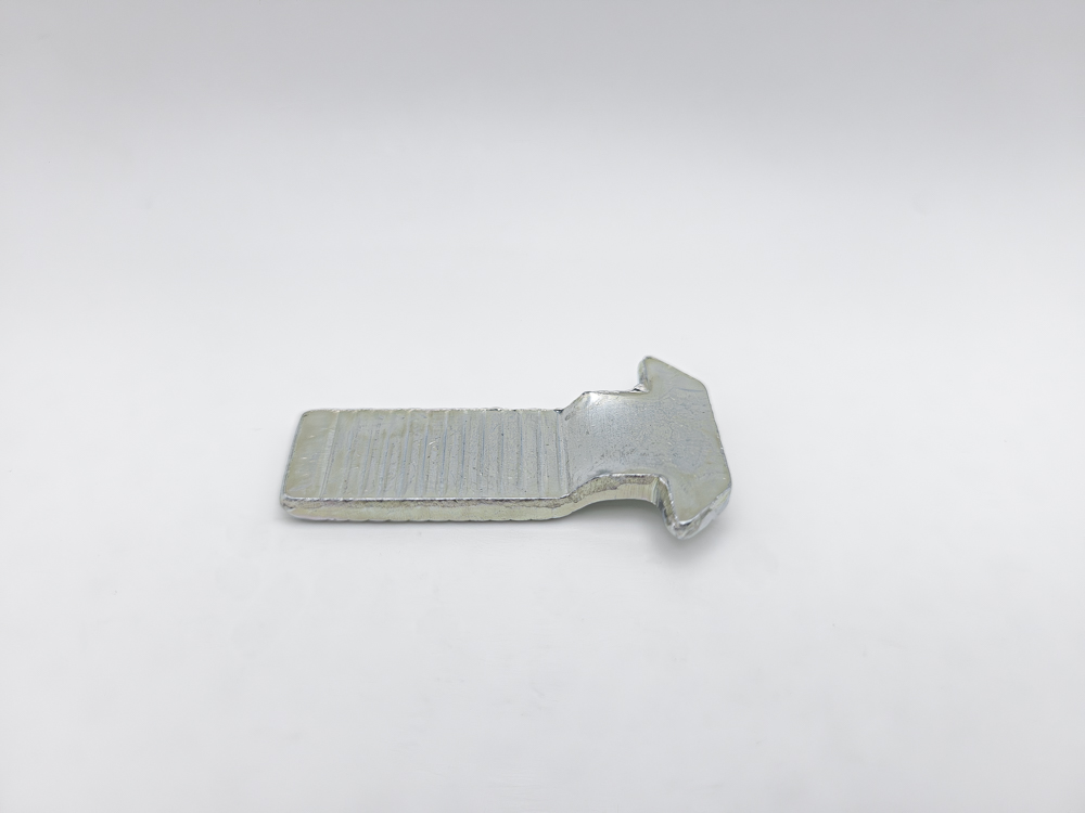 Gatillo recto en zamak para cierres embutidos de nylon en puertas y ventanas correderas. Dimensiones de 11mm de ancho por 33mm de largo.