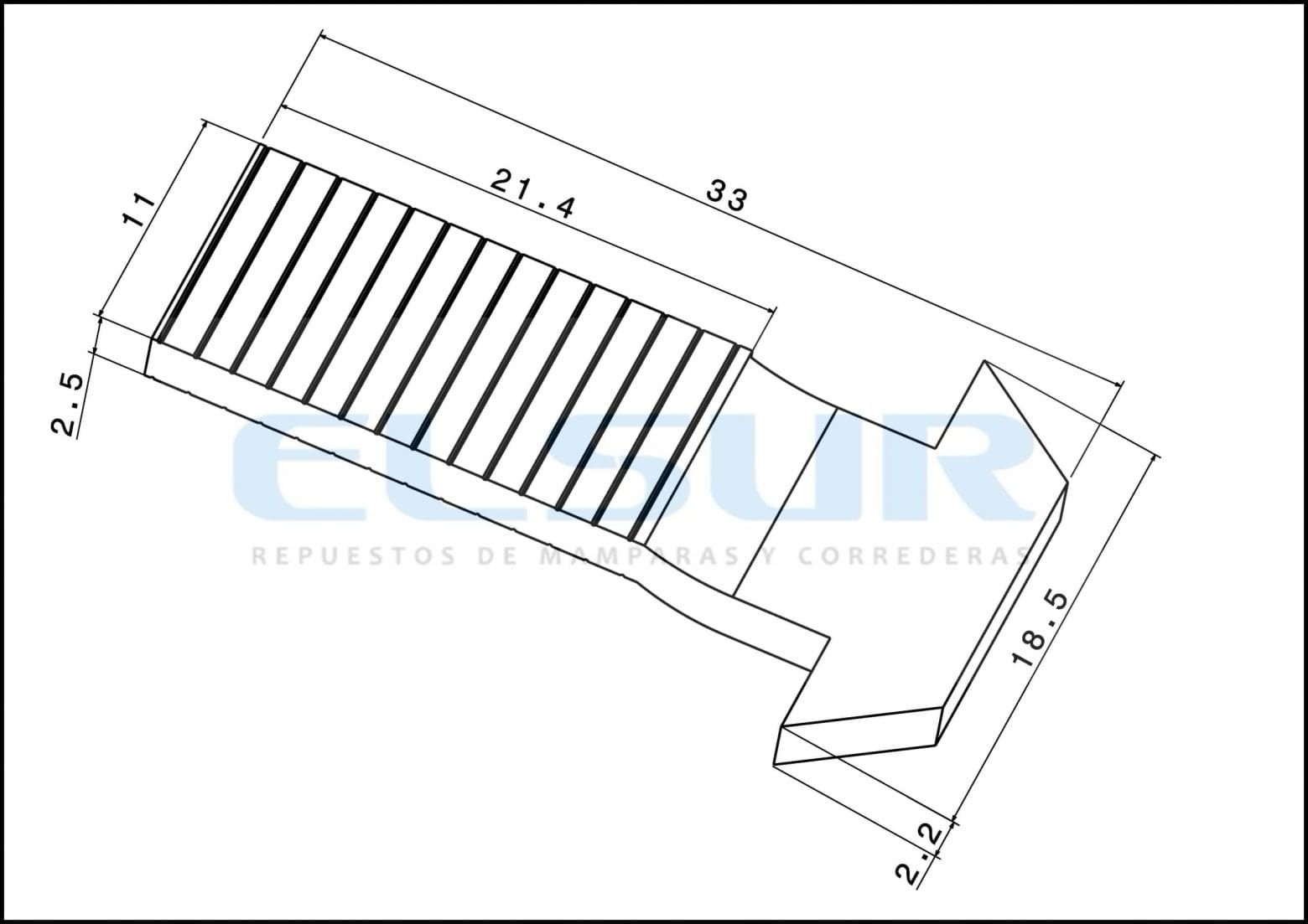 Gatillo desplazado para cierre embutido de puertas y ventanas correderas de aluminio. Longitud 33 mm. RAN (6 UNIDADES)