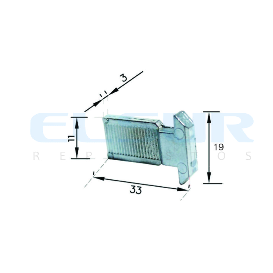 Largo total 33mm, ancho cuerpo 11 mm, grueso 3 mm, ancho cabeza 19 mm,largo cuerpo 22 mm.