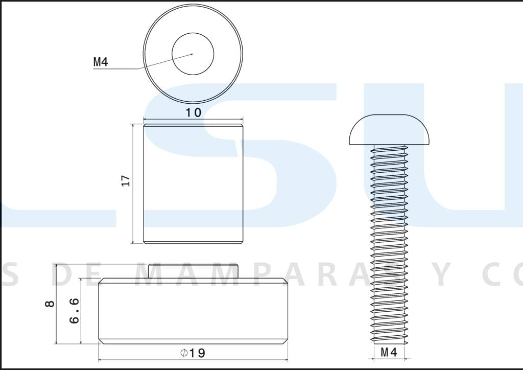 Pista lisa 19 mm casquillo 17 mm arandela y tornillo métrica 4×25 mm inox (4 UNIDADES)